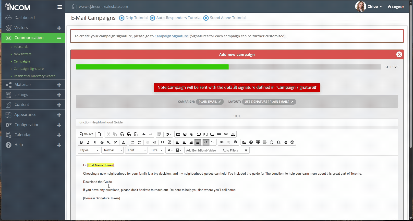 - From your Dashboard, expand Communication, then select Campaigns